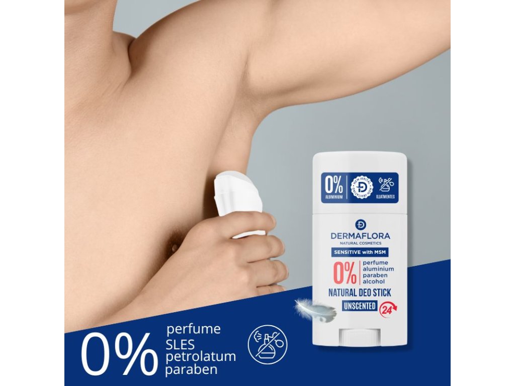 Dermaflora Sensitive MSM je neparfémovaný tuhy stick deodorant, ideální pro citlivou pokožku a lidi citlivé na vůně.