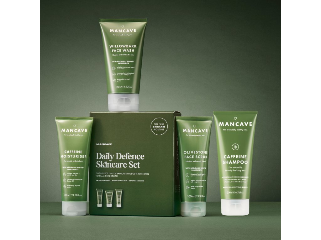 MANCAVE ORIGINAL SkinCare Set - je ideální pro muže, kteří chtějí spojit čištění, hydrataci a výživu pleti s osvěžením vlasů v jednom balení.