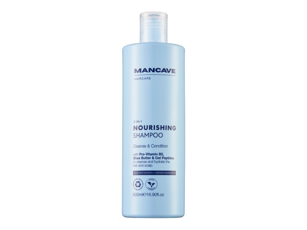 ManCave vyživující vlasový šampon 2v1 je jemný, ale účinný šampon s přírodními ingrediencemi, který posiluje vlasy, hydratuje pokožku hlavy a podporuje zdravější růst.