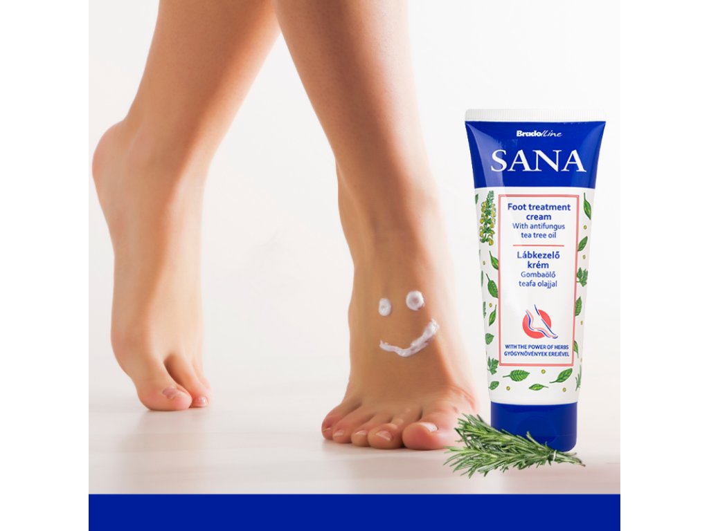 SANA krém s Tea Tree olejem chrání nohy před plísněmi a bakteriemi.